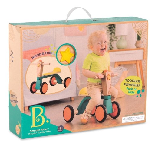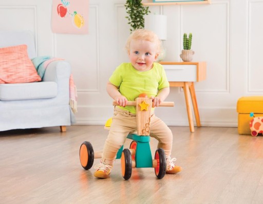 Дерев'яний балансир B.Toys зручний у їзді для дитини. Велосипед має чотири міцні колеса, що робить його дуже стійким. Передні колеса поворотні.