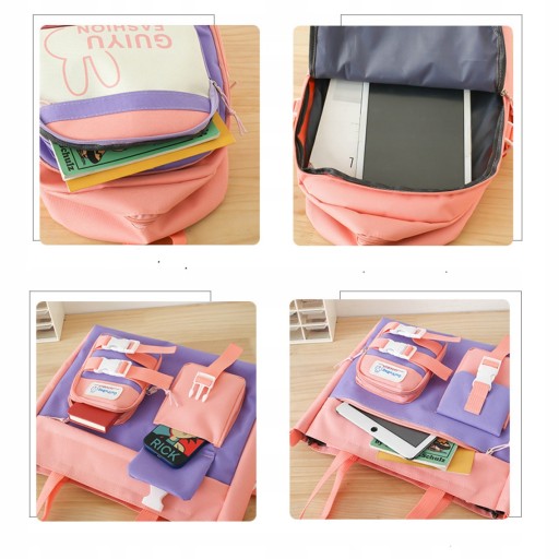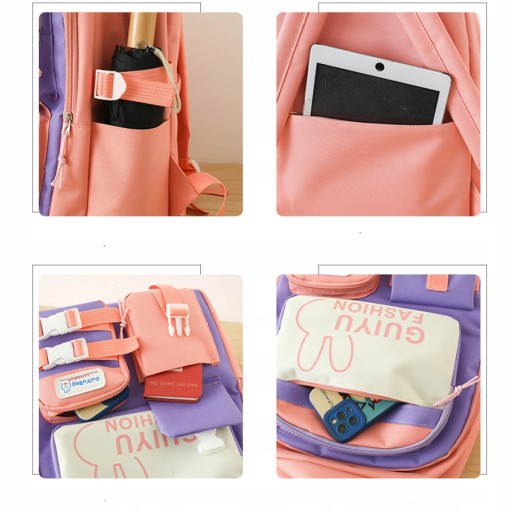 Включає 1x рюкзак, 1x сумку через плече, 1x сумочку, 1x пенал, 1x гаманець і повний набір аксесуарів. Цей набір рюкзаків є комплексним рішенням для учнів, яким потрібні основні шкільні приналежності.