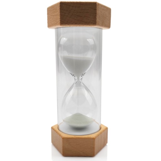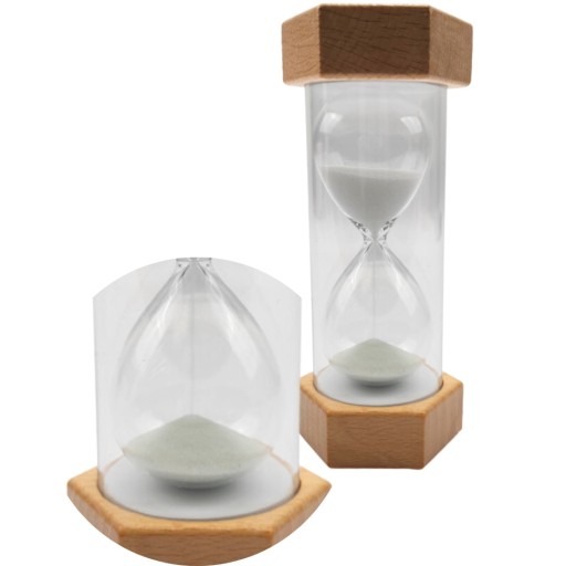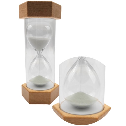 - Пісочний годинник виготовлений із безпечного скла та букового дерева, а всередині білий блискучий пісок.