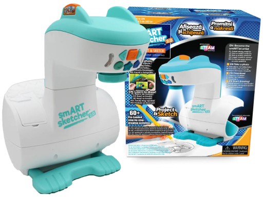 Ваша дитина любить малювати? Інноваційний проектор Smart Sketcher 2.0 створений, щоб допомогти вашій дитині розкрити свій художній талант. Абсолютно нова версія надійного пристрою має цілих 60 вбудованих графічних елементів, які стануть джерелом натхнення для створення неординарних робіт. Це ще не все. Проектор видає звуки, що імітують звуки намальованого персонажа/тварини/об'єкта, і підтримує вивчення англійської мови. Просто напишіть слово і почніть творити. Чи почне гавкати собака, створена на папері? Дайте волю бажання вашої дитини творити за допомогою нового Smart Sketcher.