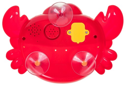 Крабик оснащений спеціальним контейнером, якийповинен заповнити рідкої сумішідля купання і води. Тоді ви повиннінатисніть кнопкуна пащі краба. Після запуску ми можемо насолоджуватися щасливими бульбашками, які плавають навколо. Крім того, іграшка грає милі мелодії.