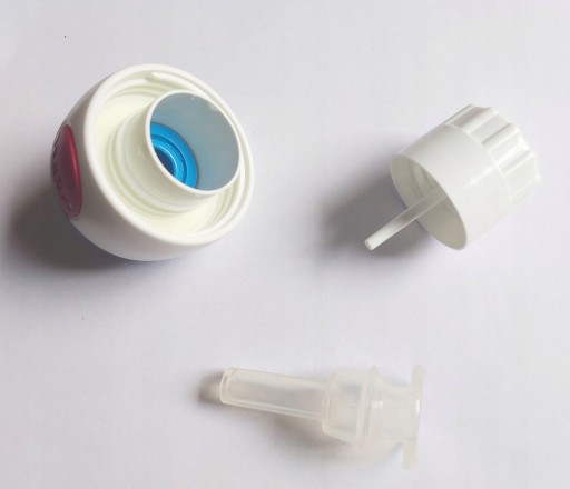 Пляшка для води має гігієнічний герметичний носик, що відкривається кнопкою. До пляшки додається гачок, завдяки якому пляшку можна повісити на рюкзак або шлейку.