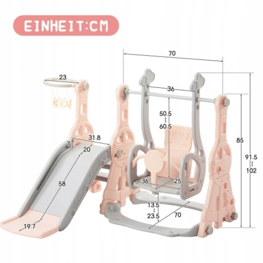 На цьому дитячому ігровому майданчику 4-в-1, включаючи гірку, раму для лазіння, гойдалку, гойдалку та баскетбольне кільце, ваші діти можуть грати різними способами та грати з друзями вдома. Продуманий дизайн цього продукту гарантує безпеку ваших дітей під час гри.
