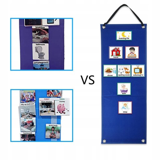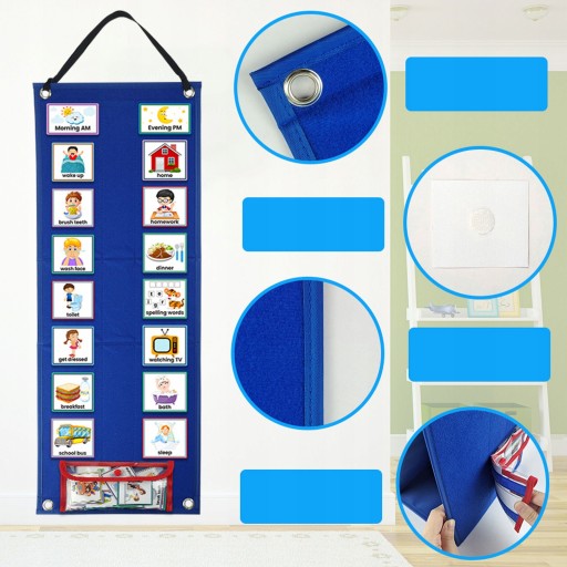 Його можна використовувати двома способами. Один можна повісити на стіну або в іншому місці як наочний план уроку для дітей, а інший можна використовувати як повстяну навчальну дошку, що стоїть на столі.