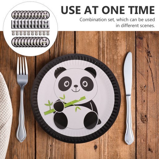 Це набір одноразового паперового посуду для дня народження. Включає паперові тарілки, чашки та серветки. Прозорий мультяшний принт панди, сповнений приємної атмосфери. Також для різноманітних вечірок, таких як дні народження, сімейні зустрічі, святкування тощо.