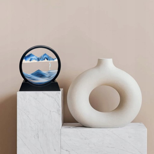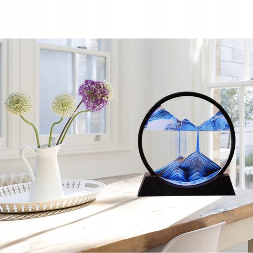 Ім'я: 7-дюймовий тривимірний динамічний пісочний годинник 3D, круглий, сипучий пісок, малюнок, прикраса столу 18*19 см, синій