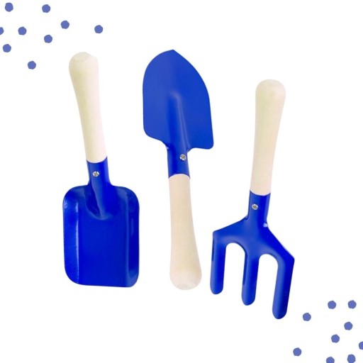 Красиві садові інструменти для дітей будуть годинами розважати вашу дитину та розвивати її інтерес до садівництва. Інструменти абсолютно безпечні для дітей, але вони також довговічні, дерев'яна ручка і металеві наконечники красивого синього кольору прослужать і подарують задоволення протягом багатьох років.