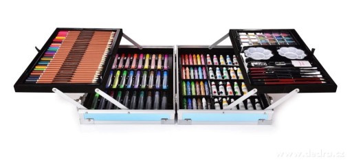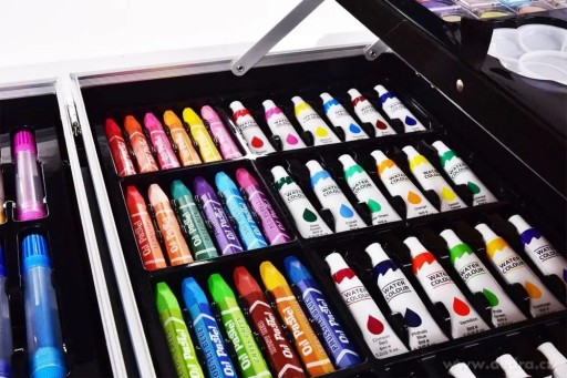 У наборі є можливість створювати малюнки різними способами, завдяки широкому вибору інструментів, таких як: олівці, фломастери, кольорові олівці, акварельні фарби, фарби в тюбику та олійна пастель. Крім того, в набір входять такі корисні аксесуари, як: гумки, пензлики для малювання фарбами, точилка і палітри для фарб.