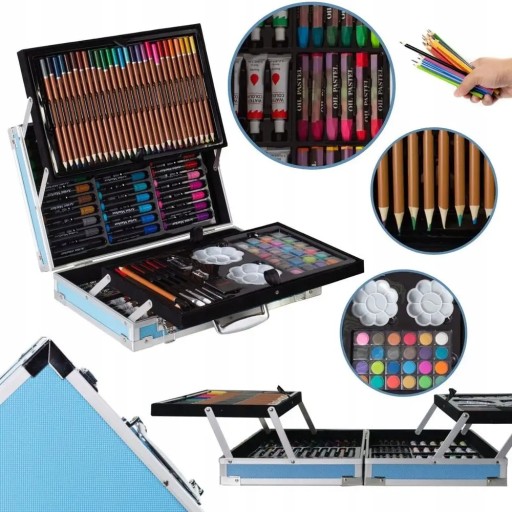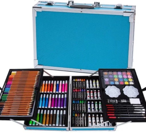 Міцний синій футляр дозволяє ефективно зберігати всі ваші малювальні матеріали в одному місці, які акуратно розташовані у відповідних відділеннях. Це дозволить уникнути безладу та відчуття безладу, оскільки все буде акуратно складено в одному контейнері. Крім того, яскравий колір валізи буде красиво виглядати на полиці, коли набір тимчасово не використовується.