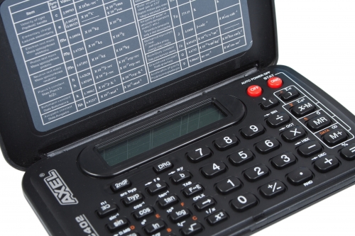 Відмінною рисою даної моделі калькулятора є складна частина, на якій розташована спеціальна таблиця з обраними фізичними формулами.