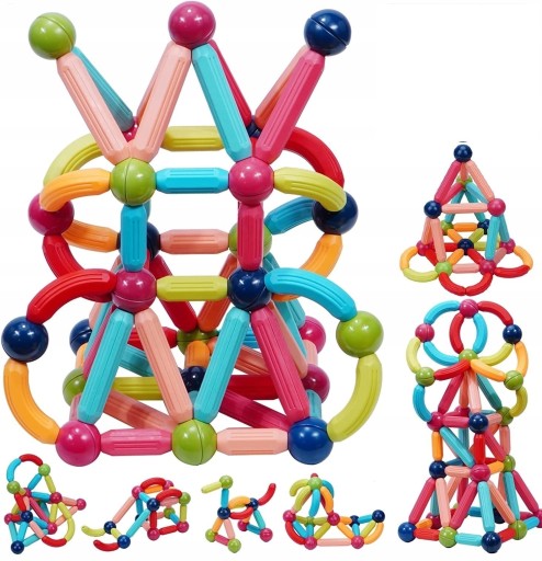 Набір складається з багатьох барвистих, магнітних елементів, завдяки яким він перетворить дитину на маленького архітектора, стимулюватиме уяву та допоможе розвинути навички конструювання.