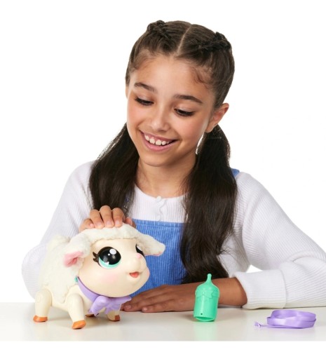 Маючи понад 25 звуків і реакцій, він не тільки звучить, як справжня вівця, але й рухається, як справжня вівця. Годуйте її з пляшечки і обіймайте - вона реагує на ваші дотики! Подивіться, як він виляє хвостом під час ходьби! Сноуї видає багато смішних і милих звуків: він косить, їсть, регоче, відригує, нюхає і чхає. Він навіть час від часу пукає!