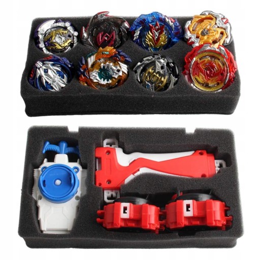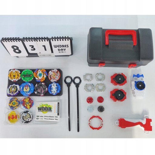 Технічні характеристики: ✔️ Стан: абсолютно новий, ніколи не використовувався ✔️ Матеріал: легований пластик ✔️ Розмір бейблейдів: 5*5*4 см ✔️ Розмір упаковки: 27 см х 17,5 см х 15 см ✔️ Вага упаковки: 1000 г Список упаковки: 12 х Бейблейдів 3 х пускові пристрої 1 х Ручка 1 x Зберігання