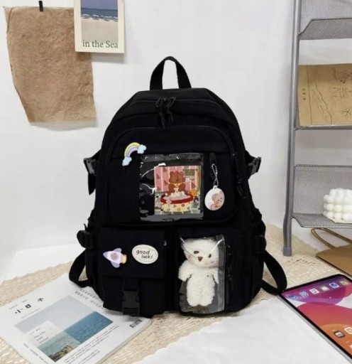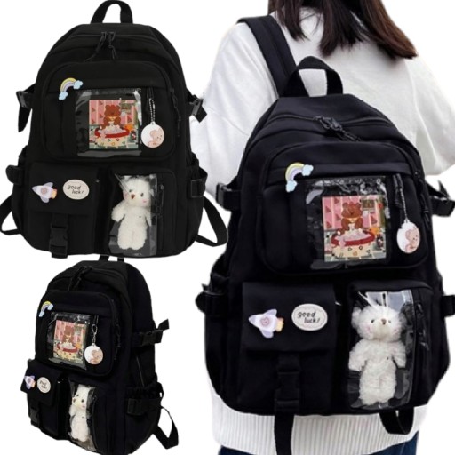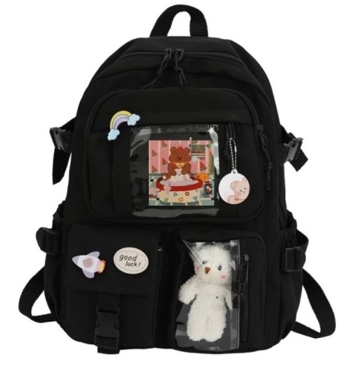 До рюкзака додається талісман плюшевого ведмедика, який видно на фото, і шпильки.