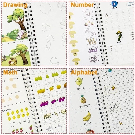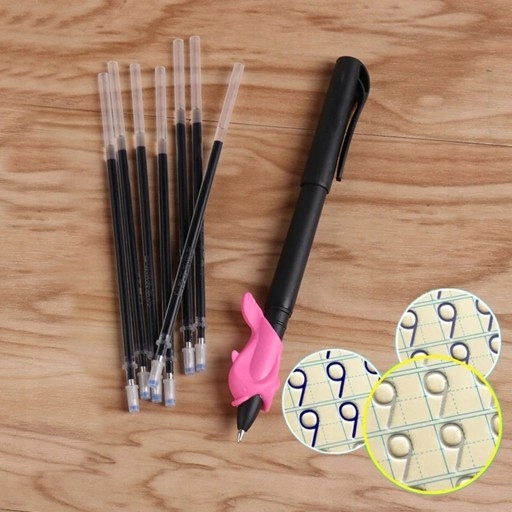 Зошити мають об'ємні борозенки, завдяки яким дитина вчиться правильно писати. Тримач для ручки допомагає розвинути вміння тримати ручку, тому ваша дитина більше не потраплятиме на руки чорнилом.