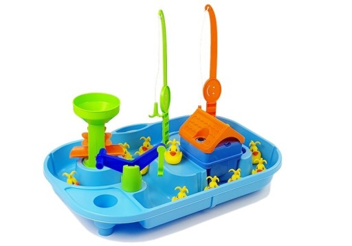 Набір являє собою корито, яке потрібно наповнити водою. Так званий фарватеру, а посередині його — водні коридори, де плавають каченята. У кожного гравця (до двох) є вудка з гачком, на яку він повинен ловити непокірних пташенят. Перемагає той, кому вдасться витягнути з води більше!