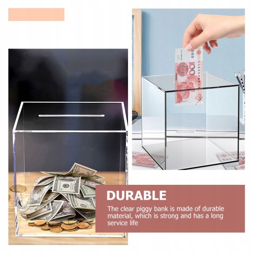 Виготовлений з акрилового матеріалу преміум-класу, цей горщик для грошей міцний і не легко пошкодиться.