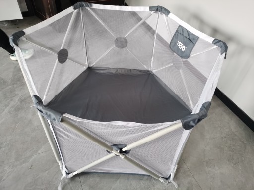 - Боковини манежу виготовлені з щільної сіткичерез яку ми бачимо нашу розраду, яка дає нам відчуття безпеки.