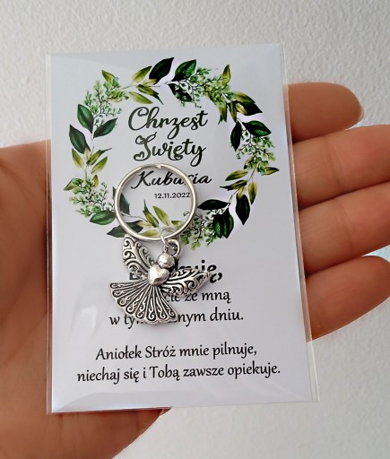 СУВЕНІР ПОДАРУНОК НА ХРЕЩЕННЯ ГОСТЯМ - ПОДЯЧНА ЛИСТІВКА ТА БРЕЛЮК З АНГЕЛОМ.
