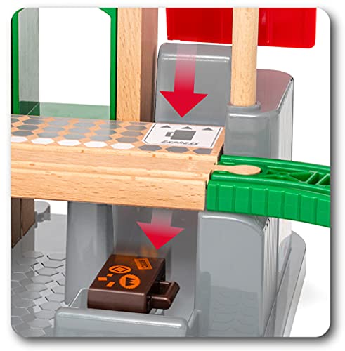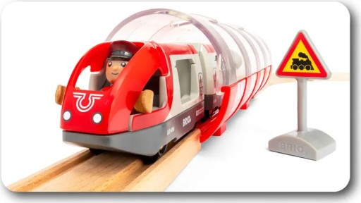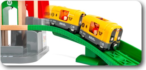 Почніть свою подорож із цього класичного іграшкового набору на великому центральному вокзалі, де пасажири можуть скористатися ліфтом або сходами для пересадки між лініями автобуса та поїзда. Потім подорожуйте дерев'яними рейками на борту червоного приміського поїзда або жовтого поїзда метро. Також є багато аксесуарів для залізниці, які можна додати до розваг, зокрема стоп-сигнал, залізничний переїзд із робочим сигналом і персонажі зі світу BRIO.