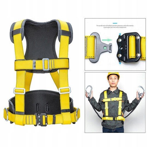 : Високоякісний повітряний ремінь безпеки, зовнішній захист конструкції: висота 60 см/23,7 дюйма. Виготовлений з дроту з легованої сталі, армованої поліефіром, міцної та довготривалої стабільності, надійної.хорошої довговічності, високої стійкості до корозії. Зручний ремінь для половини тіла, захист від падіння. Швидка пряжка, швидка перевірка, розблокування подвійним клацанням. Ідеально підходить для скелелазіння, дослідження печер, робіт на будівельних лісах, миття вікон, спилювання дерев тощо. Цей ремінь безпеки можна використовувати для захисту техніки, зовнішнього очищення за допомогою електрики.