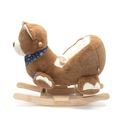 Гарний ведмедик-гойдалка створений для дітей, які люблять пригоди. Зручне сідло, дерев'яні ручки і полози забезпечать комфорт і безпеку під час безтурботного заколисування малюка. Ведмедик прикрашений красивою хусткою. Коли натиснеш на вушко, ведмідь заспіває пісеньку. Під час гри малюк повинен координувати рухи з качалкою, що стимулює його рухову координацію, розвиває уяву та покращує відчуття рівноваги. Акумуляторний відсік захований під черевом задньої бабки. Батарейки LR44 в комплект не входять.