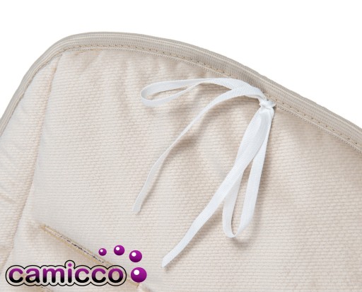 Вкладиш має спеціальні отвори для ременів безпеки і стрічку, що дозволяє прив'язати подушку або вкладиш до коляски