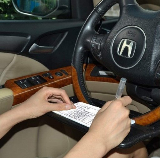Надзвичайно практичний автомобільний столик, встановлений на кермо.