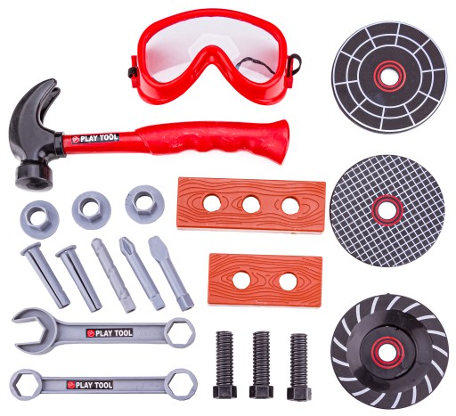 Інструменти збагачені додатковими ефектами. Кутова шліфувальна машина має обертовий диск і висувну нижню батарею. Так само шуруповерт - поворот вліво і вправо, світлодіод і висувна нижня батарея - як у справжньої техніки для дорослих. Також у шуруповерта є перемикач - фіктивний регулятор швидкості.