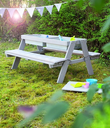 Лавки та столик дитячого комплекту для сидіння міцно з’єднані, що робить їх дуже стійкими та запобігає перекиданню. Лава і стільниця можуть навантажуватися по 50 кг кожна