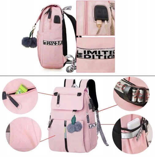 ШКІЛЬНИЙ РЮКЗАК ЗАМОК USB КАБЕЛЬ ДЖЕК КАБЕЛЬ USB ВИХІД КІЛЬЦЯ ДЛЯ БРЕЛЮЧІВ НАСОСИ