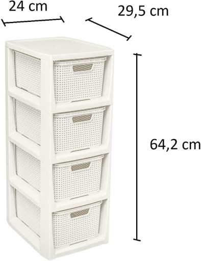 Полиця з ротанга з трьома кошиками Branq 4 x 7 л, античний білий