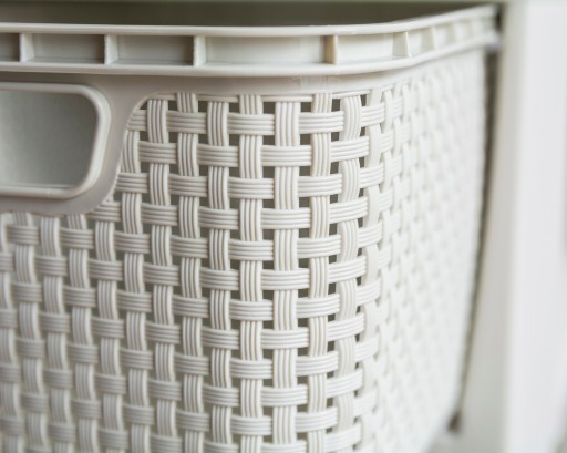 Полиця з ротанга, що складається з чотирьох частин, є дуже хорошим рішенням для зберігання в невеликих приміщеннях.