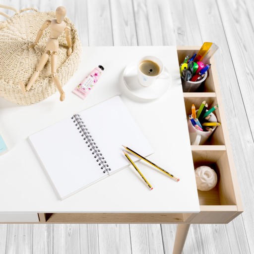 Письмовий стіл SOFIE - це сучасний, функціональний і естетично завершений предмет меблів, який знайде своє місце як в дитячій, так і в батьківській кімнаті. Інноваційне поєднання білого та бука прикрасить кожну кімнату та офіс, а три контейнери для аксесуарів та зручна ніша для ноутбука підтримають навіть найвимогливіших користувачів.