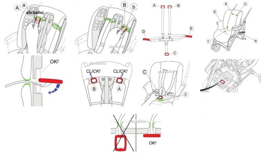 Перед покупкою перевірте, чи є у вашій колясці п’ятиточкові ремені та чи можна протягнути пряжки через отвори на стегнах і на спинці коляски.