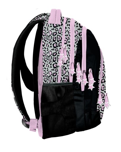âПосилена губкою, ергономічна профільована спинкаірегульовані плечові лямки, покриті м'яким матеріаломвони забезпечують дитині правильну поставу і розвантажують хребет. Завдяки цим особливостямрюкзак дуже зручнийа носити підручники та зошити надзвичайно зручно.