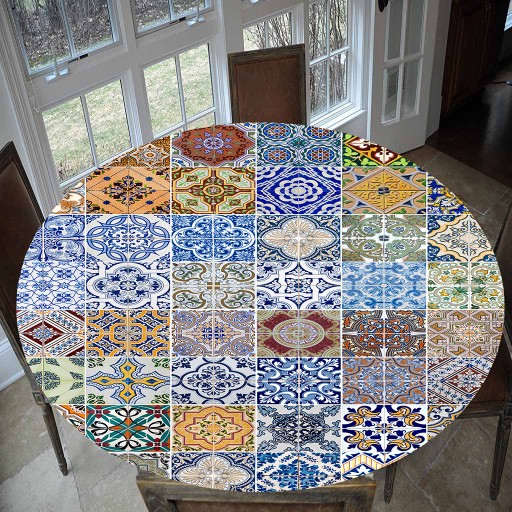 Водонепроникна нековзна кругла еластична скатертина класичного дизайну скатертини.