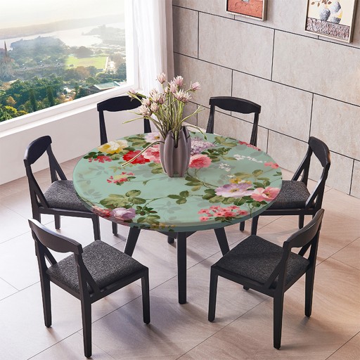 Водонепроникна нековзна кругла еластична скатертина класичного дизайну скатертини.