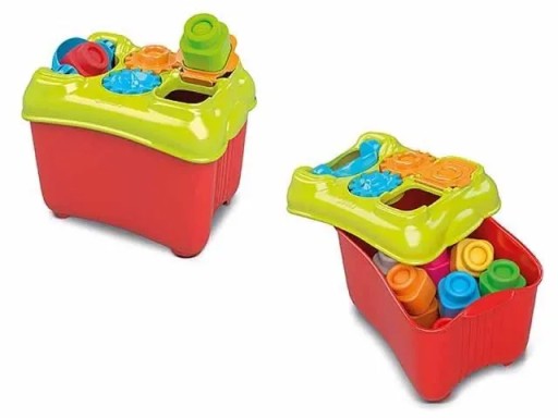 Clemmy Activity BucketНадзвичайне барвисте відерце з 15 блоками Clemmy та веселою кришкою з безліччю механічних завдань, створених спеціально для маленьких дітей! 2 передачі дійсно рухаються! Завдяки гойдалкам і дверцятам блок легко покласти у відро. Стимулює ручні навички та розуміння зв'язок між причиною і результатом.