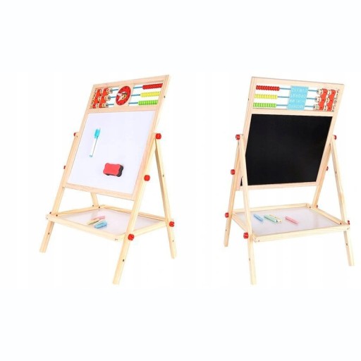 З одного боку крейдяна дошка, з іншого магнітна поверхня для письма маркерами. Ідеально підходить для розвитку художніх навичок шляхом малювання крейдою або маркером, а також для навчання письма.