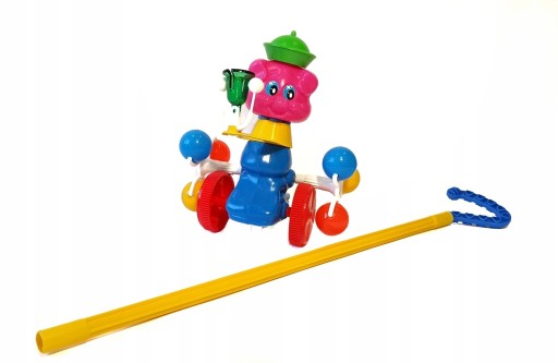 Дитина веде іграшку перед собою за допомогою палиці, що входить в комплект.