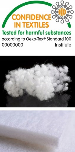 Силіконове волокно наповнює килимок. У виробництві використовуються тільки нові волокна, без перероблених добавок. Клітковина біла, чиста і свіжа. Завдяки використанню дуже якісної сировини флізелін має антиалергічні властивості, повітряний, не має запаху, не вбирає вологу та не виділяє хімічних сполук.