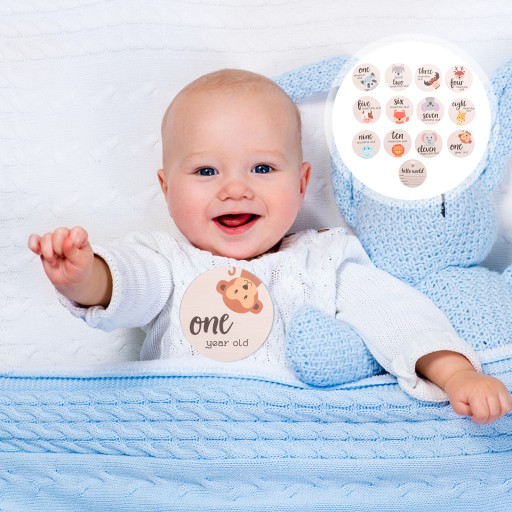На цих дерев’яних картках можна записати хвилюючий перехідний місяць від народження до першого року життя вашої дитини.
