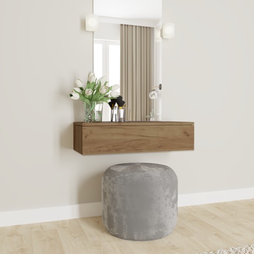 Унікальний туалетний столик з різними варіантами використання, його можна використовувати і як туалетний столик у спальні, і як письмовий стіл. Його також можна використовувати в передпокої для підручних речей або просто як елемент декору.Завдяки своєму зовнішньому вигляду він підходить як для класичного, так і для сучасного інтер'єру. Його підвісна форма додасть легкості вашому інтер'єру, а також дозволить утримувати в чистоті важкодоступні місця.
