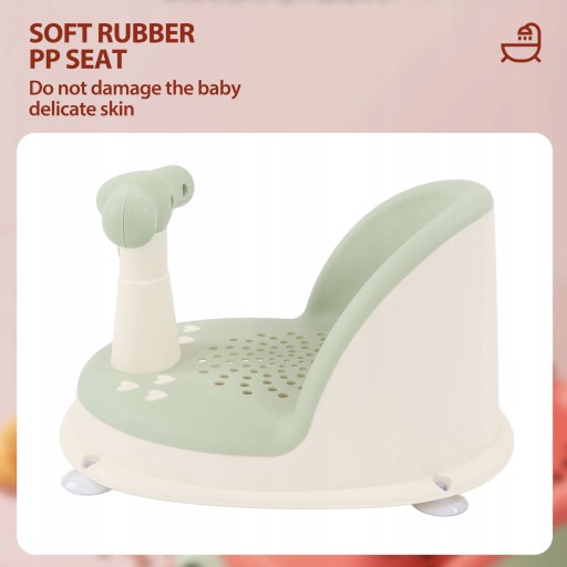 5. Матеріал PP: Сидіння для душу для дитини виготовлено з PP і TPE, які є безпечними, зручними для шкіри та міцними. Легко чиститься і дуже підходить для тривалого використання.