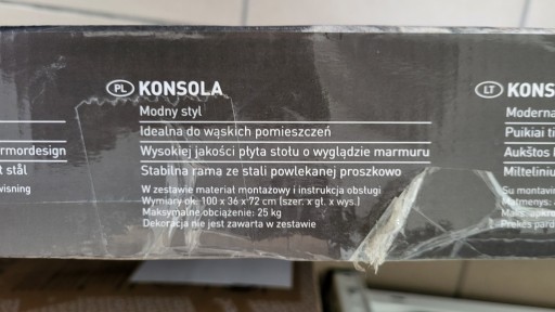 ПРОДАЮ НОВУ КОНСОЛЬ LIVARNO 306704_1904. КОНСОЛЬ НОВА, ВИЯТА З КОРОБКИ ДЛЯ ПЕРЕВІРКИ НАБОРУ, ВЕРХ ВІДКРИТИЙ ТІЛЬКИ ДЛЯ ФОТО ТА ПЕРЕВІРКИ. КОНСОЛЬ НЕ СКЛАДАЛАСЯ. СТАЛЕВІ НІЖКИ З ЧОРНИМ ПОРОШКОВИМ ПОКРИВАННЯМ. СТІШНЯ З МАРМУРНОЇ ДОШКИ ALA. ПРОДАЮ ЗАВОДСЬКИЙ КОМПЛЕКТ.