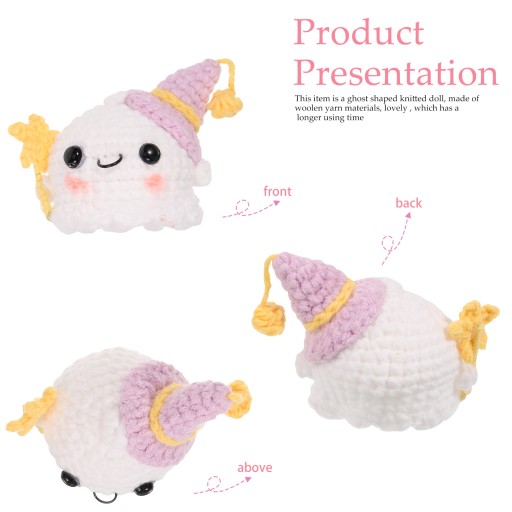 Це в'язана лялька-привид, виготовлена з вовняної пряжі, мила та безпечна, яка має довший час використання. Тонка робота та чудовий дизайн вовняної пряжі подарують вам гарний настрій.