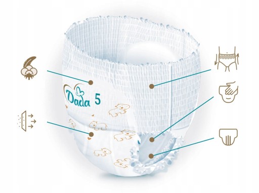Завдяки комфорту надягання, легкості знімання та ідеальній посадці підгузки DADA PANTS є ідеальним вибором для кожного активного дня вашої дитини. Підгузки DADA PANTS гарантують миттєву сухість.