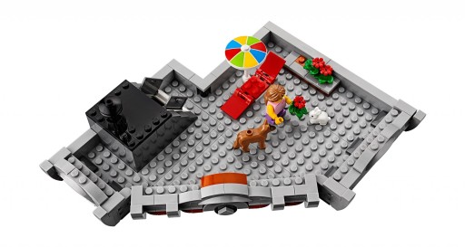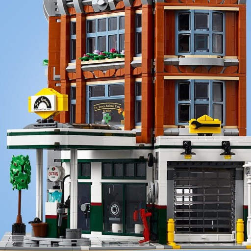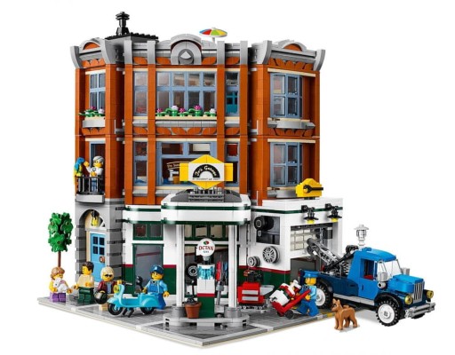 - Трирівнева «Кутова майстерня» — це вдосконалена модель із великою кількістю цегляних деталей. Має деталізований фасад 1950-х років з вивіскою АЗС, прості та еркерні вікна, арочний вхід, ролетні ворота майстерні, декоративний край даху та терасу, а також секцію доріжки з деревом і прикрашеним ліхтарем. У комплект також входять евакуатор і скутер.