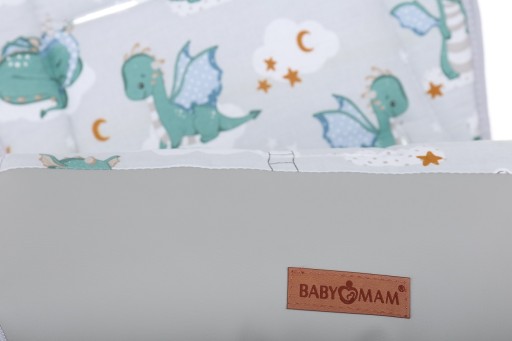 Фірмовий вкладиш Babymam забезпечує максимальний комфорт і безпеку. Завдяки м'якому наповненню виключає удари при ходьбі по нерівній поверхні. Ваш малюк завжди буде насолоджуватися безмежним комфортом під час прогулянок, особливо під час денного сну на свіжому повітрі. Вставка захистить оббивку від бруду. Використаний дизайн додасть вашій колясці стильний вигляд.